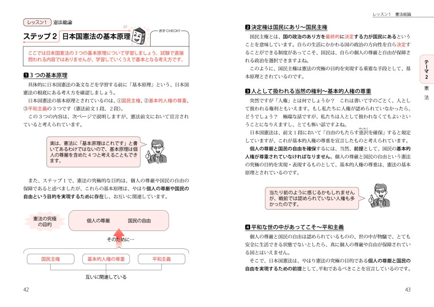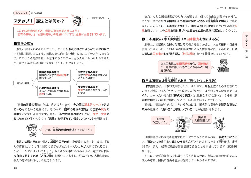 基本項目の説明に重点をおき、基礎力を養成することが狙い。素朴な疑問点をフォローする会話も満載。基本的な条文や重要判例もできるだけ掲載。特に覚えておきたい重要なポイントは付属の赤シートで確認できる。