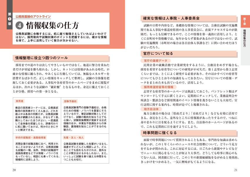 民間企業との違い、面接カードの書き方とチェックポイント、面接会場でのマナー、面接の形式と評価のポイントなど、面接試験のアウトラインと攻略法を解説。